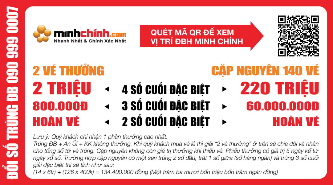 Lưu ý: Phiếu thưởng là giải thưởng khích lệ của điểm bán hàng nên khách hàng trúng thưởng chỉ có thể đổi thưởng tại chính các điểm bán hàng của Minh Chính Lottery